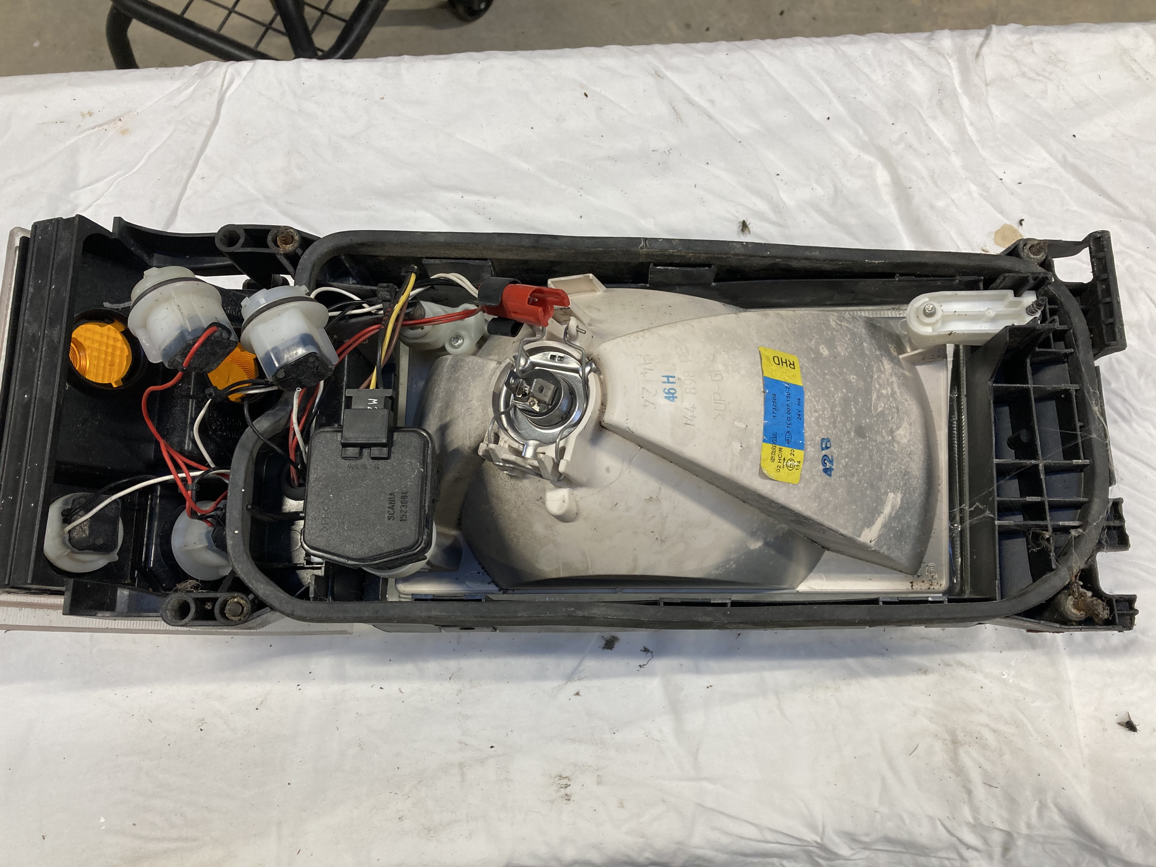 Scania front headlight cluster including indicator lights - off side