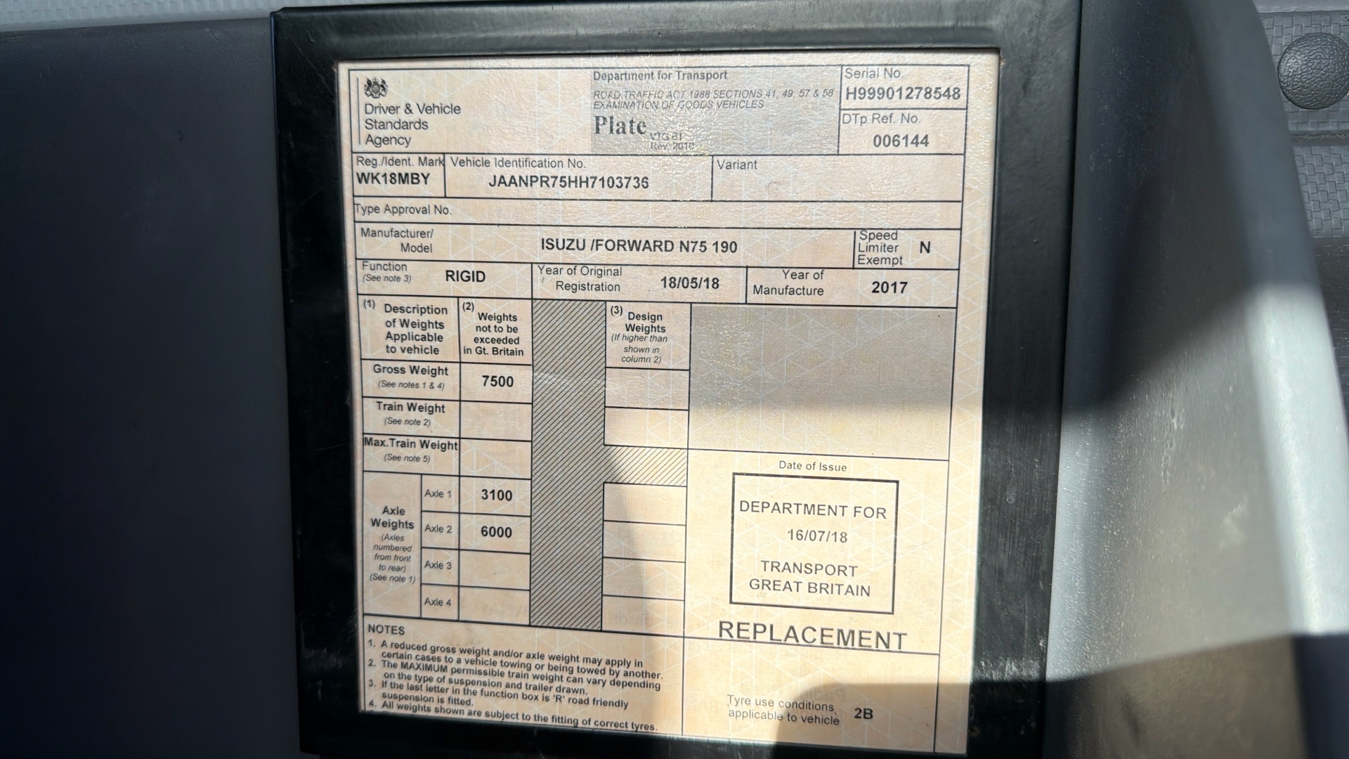 | Vehicle Type | 7.5 TON TRUCKS |